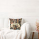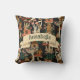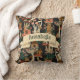 Travesseiro decorativo personalizado e bonito para crianças com ilustrações mágicas de pequenas cascas tocadas em cima de cogumelos vermelhos e pessegueiros, e cercadas por borboletas, flores e verde.