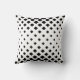 Um travesseiro preto e branco. Pares pretos, padrão geométrico. Cor de fundo branca.