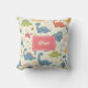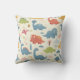 Este travesseiro decorativo brincalhão personalizado apresenta dinossauros coloridos e brancos sorrindo em poses divertidas. Uma etiqueta de nome desenhada à mão está no centro do design.