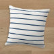 O travesseiro decorativo design de quadrado moderno apresenta um padrão simples e na moda horizontal listrado com faixas largas em faixas brancas clássicas e finas em uma cor azul-marinho de tendência. Nota, as cores podem ser personalizadas para coordenar com o decorador doméstico.