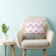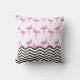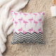 Almofada de lançamento com padrão de flamingo e listras de chevron. O reverso desta almofada é um rosa combinando sólido, onde você também pode adicionar um monograma personalizado ou frase atraente para personalizar ainda mais sua compra. Lindo design para o quarto de uma jovem ou quarto de dormitório,