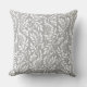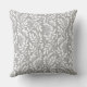 O design de travesseiro decorativo quadrado Elegante e chic apresenta um padrão foliar floral branco de folha tenra com lindos ramos e galhos florescendo com folhas e bagas. Nota, o plano de fundo da cinza pode ser personalizado para coordenar com o esquema de cores do decorador doméstico.