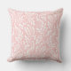 O design de travesseiro decorativo quadrado Elegante e chic apresenta um padrão foliar floral branco de folha tenra com lindos ramos e galhos florescendo com folhas e bagas. Nota, o plano de fundo da rosa claro pode ser personalizado para coordenar com o esquema de cores do decorador doméstico.