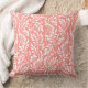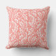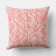 O design de travesseiro decorativo quadrado Elegante e chic apresenta um padrão foliar floral branco de folha tenra com lindos ramos e galhos florescendo com folhas e bagas. Nota, o fundo cor-de-rosa laranja coral pode ser personalizado para coordenar com o esquema de cor do decoro doméstico.