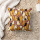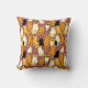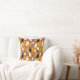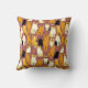 Travesseiro em um padrão lúdico de gatos estilizados em tons quentes de gengibre, creme, preto e marrom sobre um fundo marrom caramelo. Cada gato tem sua própria expressão e marcas bonitinhas, com pequenas pegadas espalhadas por toda parte.