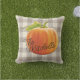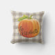 Estilo de fazenda, outono, beige castanho-branco e padrão de xadrez de gingham esbranquiçado, com uma abóbora laranja brilhante no topo. Com a opção de personalizar ou personalizar com um nome de família ou texto (limitado) de sua escolha. Uma almofada quente divertida ao ar livre para enfeitar o seu pátio ou a varanda da cabine e para se acalmar durante o outono, o feriado de Ação de Graças e o Halloween.