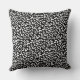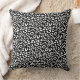 Design de travesseiro decorativo quadrado moderno e chic apresenta um padrão de impressão de animais de tendências e na moda de manchas brancas-leopardo ou guepardas. Nota, a cor preta de fundo pode ser modificada para coordenar com a decoração inicial.