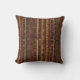 Almofada de lançamento com padrão de listra geométrica quente com diamantes de inspiração tribal, zigue-zagues e faixas verticais texturizadas em tons terrosos de marrom, terracota, bege, bege e carvão. Um design boho aconchegante ideal para amantes de decoração do sudoeste, fãs de estilo rústico e qualquer pessoa atraída por estéticas terrosas e artesanais.