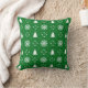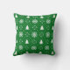 Travesseiro decorativo festivo com flocos de neve verde-escura/branco e padrão de árvores de natal.