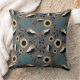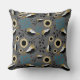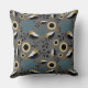 Padrão de tendências com pássaros, flores, ramos com bagas na travesseiro decorativo da cinza. Um caso chic com cinza de fundo com ouro e pássaros negros, sotaques lacrimogêneos e flores em padrão estilizado de arte. Fácil de personalizar com a sua inicial. Design do Emporium de Jenn.