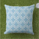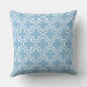 O travesseiro na moda apresenta um moderno padrão decorativo marroquino de quatrefoil em branco. Personalize o céu / fundo azul em pó para coordenar com a decoração ao ar livre.