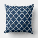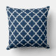 O travesseiro de sotaque quadrado moderno apresenta um elegante padrão quatrefoil marroquino em cores azul e branco marinho. Nota, a cor de fundo pode ser modificada para coordenar com a decoração inicial.
