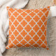 O travesseiro de sotaque quadrado moderno apresenta um elegante padrão quatrefoil marroquino em cores vibrantes cor laranja e branca. Nota, a cor de fundo pode ser modificada para coordenar com a decoração inicial.