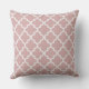 O travesseiro de sotaque quadrado moderno apresenta um elegante padrão quatrefoil marroquino em cores branco e rosa cor rosa mauve. Nota, a cor de fundo pode ser modificada para coordenar com a decoração inicial.