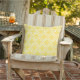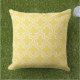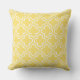O travesseiro na moda apresenta um moderno padrão decorativo marroquino de quatrefoil em branco. Personalize o fundo amarelo brilhante para coordenar com a decoração exterior.