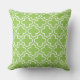 O travesseiro na moda apresenta um moderno padrão decorativo marroquino de quatrefoil em branco. Personalize o plano de fundo do verde limão para coordenar com a decoração ao ar livre.