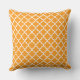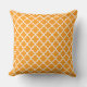 Design de travesseiro de sotaque quadrado apresenta um padrão quatrefoil marroquino na moda gráfico. As cores são brancas e laranja