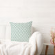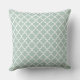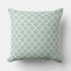 Design de travesseiro de sotaque quadrado apresenta um padrão quatrefoil marroquino na moda gráfico. As cores são brancas e verde-acinzentadas