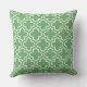 O travesseiro na moda apresenta um moderno padrão decorativo marroquino de quatrefoil em branco. Personalize o plano de fundo verde para coordenar com a decoração exterior.