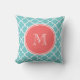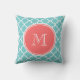 Almofada Padrão De Quatrefoil Teal, Monograma De Coral
