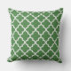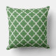 Travesseiro de sotaque quadrado moderno apresenta um elegante padrão quatrefoil marroquino em cores verde-folhagem e branco. Nota, a cor de fundo pode ser modificada para coordenar com a decoração inicial.