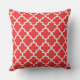 Travesseiro de sotaque quadrado moderno apresenta um elegante padrão quatrefoil marroquino em cor vermelha e branca cor laranja coral. Nota, a cor de fundo pode ser modificada para coordenar com a decoração inicial.