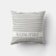 Cinza Castanho traça um padrão ao ar livre. Cinza personalizada travesseiro estriado castanho com nome do barco ou modelo de nome do resort de praia para áreas de assentos externas. Colocação do nome do barco em ambos os lados. Travesseiros personalizados são uma ideia de presente excelente para ela e para ele, barqueiros e marinheiros. Ideias clássicas de baralho de casas listradas e ideias de barcos feitas com amor oceânico © Design y.BEE SEA