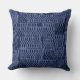 Um padrão artístico baseado em um padrão de renda cobre esta almofada decorativa azul índigo.