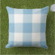 O design travesseiro apresenta uma xadrez de gingham/padrão de verificação casual que é perfeito para o verão! Nota, você pode personalizar o céu / cor azul de fundo em pó para coordenar com sua decoração ao ar livre.