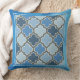 Padrão do estilo marroquino e Fundo azul esverdeado - Um belo travesseiro reversível que ostenta um padrão do estilo marroquino de um lado e um padrão azul claro do outro lado.