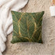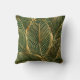 Almofada Padrão Elegante Verde de Folhas Douradas