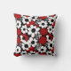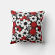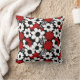 Flores vermelhas, pretas e brancas, travesseiro de padrão timístico em película.