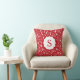 Um padrão floral de Natal moderno, vermelho-na moda e branco, decora este travesseiro. Personalize com o seu monograma inicial. Coordena-se com os travesseiros de Natal da fazenda no compro. Projetado para você pelo Blackberry Boulevard.