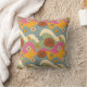 Um padrão retrorreflector lúcido com faixas coloridas onduladas em verde, rosa, amarela e bege. Flores brancas e laranja brilhantes com contornos ousados são espalhadas pelo design, criando uma estética alegre e inspirada na safra.