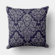 Almofada Padrão Floral do Damasco Luxurioso em Azul Muito P