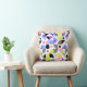 Este travesseiro moderno apresenta um padrão geométrico colorido, sem costura, com linhas e formas em amarelo, azul, rosa, roxo e preto sobre fundo branco.