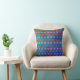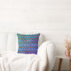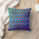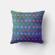 Renove o seu quarto! Travesseiro decorativo tem um padrão quadrado geométrico em rosa e laranja contra um fundo azul texturizado. Clique em 'Personalizar' para adicionar o seu monograma ou nome e criar o seu único design!
