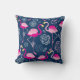 Almofada Padrão gráfico de flamingos cor-de-rosa em azul es