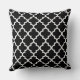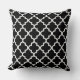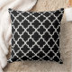 Travesseiro de sotaque quadrado moderno apresenta um elegante padrão quatrefoil marroquino em cores preto e branco. Nota, a cor de fundo pode ser modificada para coordenar com a decoração inicial.