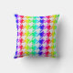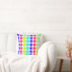 Este travesseiro decorativo colorido apresenta um padrão de som geométrico branco sobre um fundo de gradiente do arco-íris.