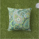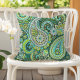 Esta almofada externa apresenta um ousado padrão paisley em verde lima e turquesa para alegrar seu pátio, varanda ou alpendre.