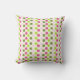 Este travesseiro apresenta um padrão de bolinhas com tons de rosa e verde-oliva sobre um fundo amarelo muito claro.