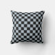 Um padrão contínuo de quadrados alternados pretos e azuis claros cria um efeito clássico de tabuleiro de xadrez. O design é simétrico e espaçado uniformemente.