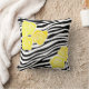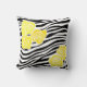 Almofada Padrão zebra preto e branco + rosas amarelas