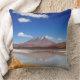 O coxim do travesseiro decorativo da foto de uma paisagem com um vulcão neve-tampado refletiu em um lago e em uma grama amarela no deserto de Atacama perto de Uyuni na beira entre Bolívia e Chile na alta altitude do Altiplano nas montanhas andinas.