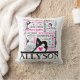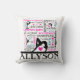 Este travesseiro decorativo da ginástica caracteriza um fundo branco coberto com os termos da ginástica em uma variedade de pias batismais e cores. Há 4 silhuetas diferentes do gymnast e um campo feito sob encomenda do texto a personalizar com um nome antes de pedir.