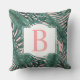 O design de travesseiro exterior, de estilo cinza tropical, apresenta uma palma verde e um padrão de folhas monstera de frondes em camadas com fundo de mancha pastel. Quadro decorativo branco tem uma letra de monograma em cor-de-coral brilhante (pode ser personalizado) que você pode personalizar com a inicial do seu sobrenome.