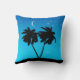 Travesseiro decorativo numa silhueta negra de palmeiras de uma ilha tropical, sobre um fundo azul de gradiente à noite com estrelas e lua crescente