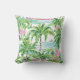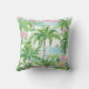 Este travesseiro decorativo de algodão giro apresenta um padrão de palmeira tropical em rosa e verde pré-disquetes.