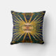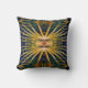 O design de explosão solar original de ZoeSPEAK neste Travesseiro decorativo foi feito a partir da fotografia original de Zoe de frentes de palmetto de serra. As frentes amarelas esverdeadas se propagam contra um fundo azul esverdeado escuro, formando um padrão parecido com tecido tapeçaria.